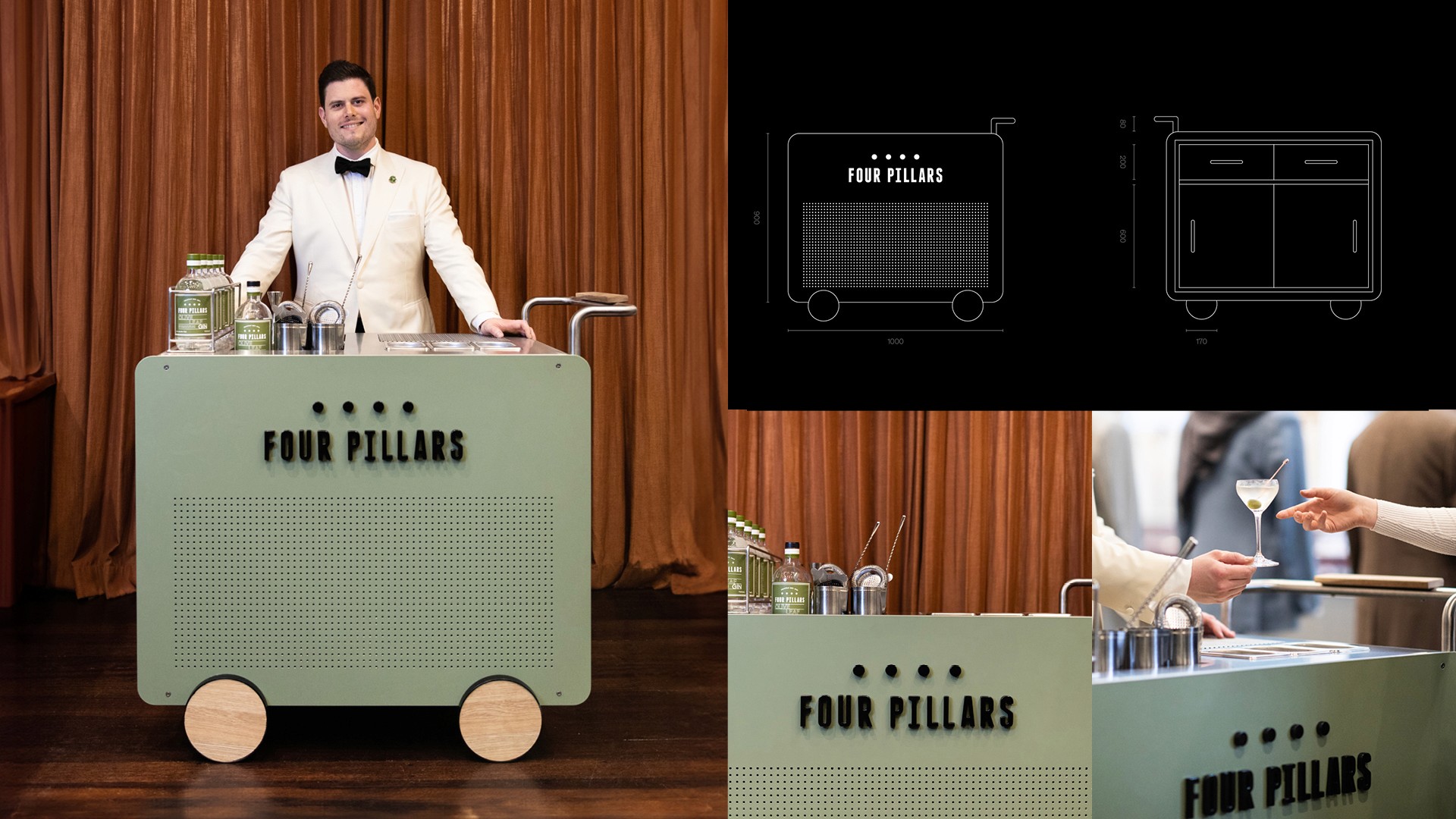 A series of environmental design projects for Four Pillars Gin explored how the brand could come to life across physical spaces, from pop-up activations to permanent retail and hospitality environments. Each project required balancing immersive brand experience with practical considerations such as modular setup, pack-down for transport, material durability, and integration with existing architectural elements.