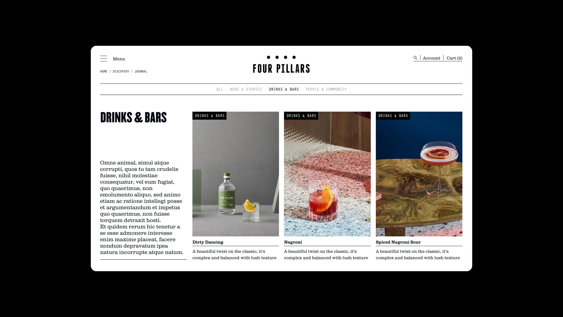 Four Pillars Gin’s website was redesigned to transform an outdated, underperforming site into a visually rich, immersive experience that effectively tells the brand story, engages visitors, and supports international customers. Working alongside a partner digital agency, the site was designed end-to-end to reflect the premium quality and craftsmanship of the brand, with product pages that showcase detail, seamless global shipping, and optimised navigation and performance across all devices.